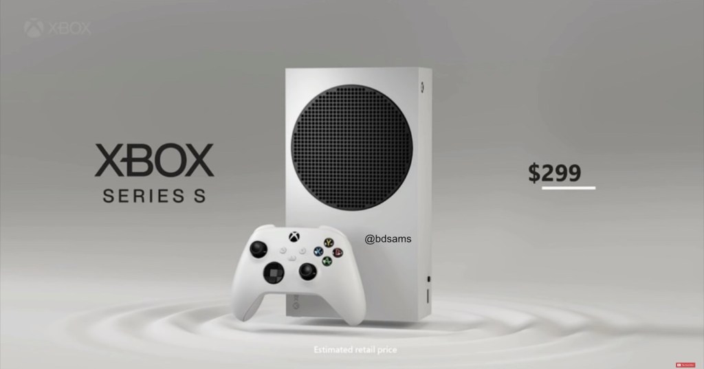 An image of the Xbox Series S has leaked alongside a possible price. The system is thinner than the Series X and looks similar to the traditional Xbox One. A large black circular vent on the side appears to be the same as the one found on top of the Series X. The rumor of no disk tray is confirmed but we still do not have information on internal hardware. The price for the Series S is $299 and it is being rumored that the Series X is $499. This looks to be a still from an upcoming reveal trailer. Now that the image has leaked, expect Xbox to officially reveal the console soon.