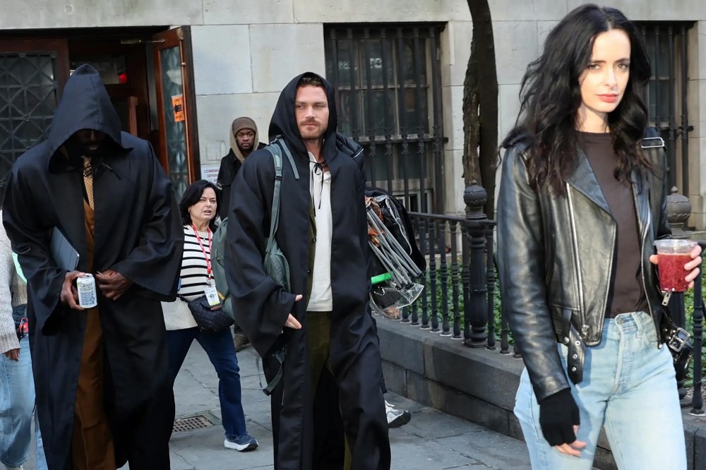 Finn Jones was seen sporting a white shirt and dark green trousers, a grounded update to Danny Rand’s classic aesthetic. Meanwhile, Krysten Ritter remains true to form in her signature black leather jacket and distressed jeans. Interestingly, some shots showed the actors wearing dark, hooded robes over their costumes between takes—a common tactic used by Marvel to hide updated hero suits or specific plot-related gear from prying eyes.